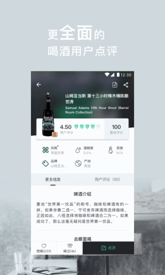 社交网络的形式提供有关啤酒、精酿啤酒的所有信息。它不仅提供了数以万款啤酒的资料,众多网友用户的真实点评,更让你方便的找到身边好喝的啤酒,发现精酿啤酒的
