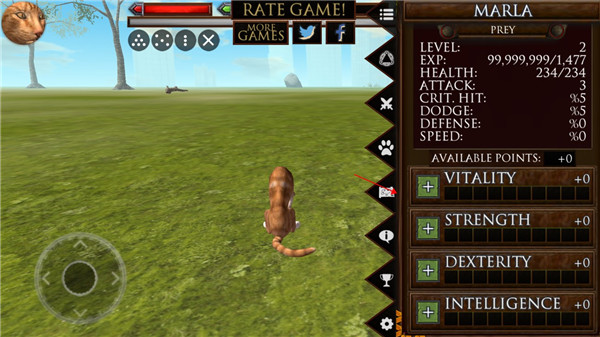 你的小猫需要你用心培养。通过捕获猎物、享用美食,它们获得经验;通过照顾家人、完成任务,它们加速成长。每一次升级,都会增加小猫的健康值和攻击伤害,让它们在战斗中更加可靠。同时,你还能赚取积分,用来提升自己的统计数据,甚至增加整个猫群的规模。从孤身一猫到族群壮大,从弱小无助到独当一面,这条成长之路上的每一步,都凝聚着你的心血。
