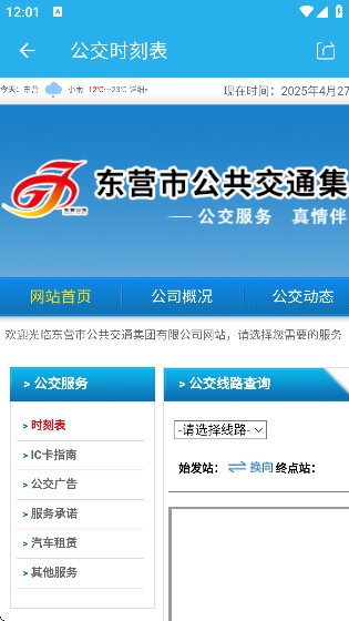 1、打开东营智慧公交 App,点击页面左上方的实时公交板块。