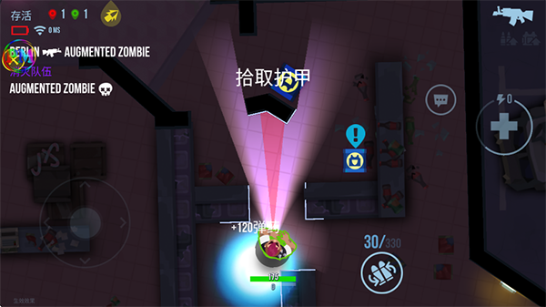 游戏采用俯瞰式上帝视角,左手摇杆控制角色移动,右手按键完成换弹、治疗等操作。操作相对简单,适合新手。