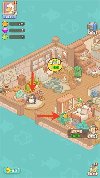 1.这款游戏以经营为主,我们需要通过服务鸟类客户赚取金币和街道等级经验以解锁跟多的设施和场景。