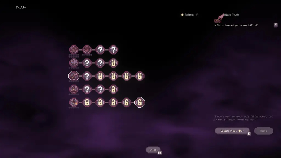 这些升级需要天赋,天赋是你在游戏过程中获得的。即使失败,也会奖励你足够的天赋,逐步强化你未来的尝试。