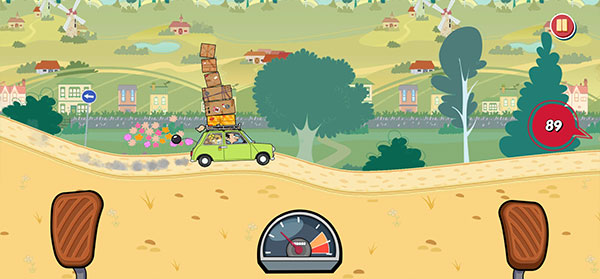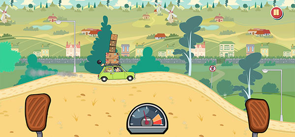 2、在这里我们要做的就是控制憨豆先生的车子到达终点,在送快递的过程中需要小心不要将物品掉落,合理的利用刹车和加速踏板达到终点