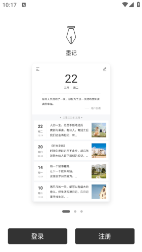1、墨记日记是一款主打精美排版的日记、笔记类应用,兼顾实用性与美观度。