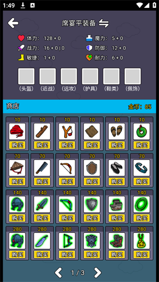 然后回到初始村镇刷机,沿着小镇刷机,别的不管一路刷,存够金币就要及时换装备,装备在底部第五个。