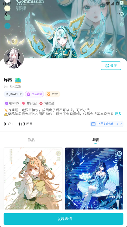 3、进入作者详情界面,点击下方发起邀请
