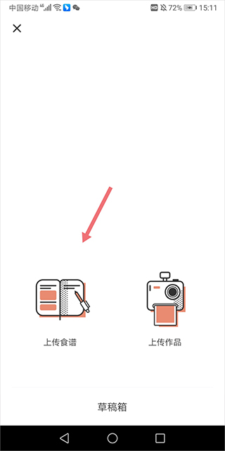 1、进入应用【我】页面的上传板块,找到并点击【上传食谱】选项。