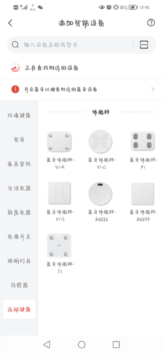 2、开启位置服务和蓝牙连接,选择左边下拉框的运动健康,进入选择体脂秤型号