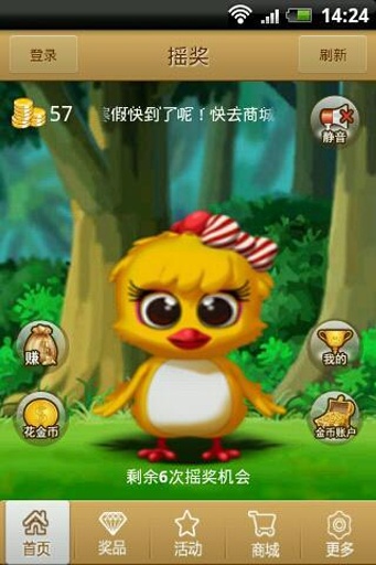 1.摇奖:每天几次机会,不摇白不摇,摇到金币攒起来,摇到奖品领回家。