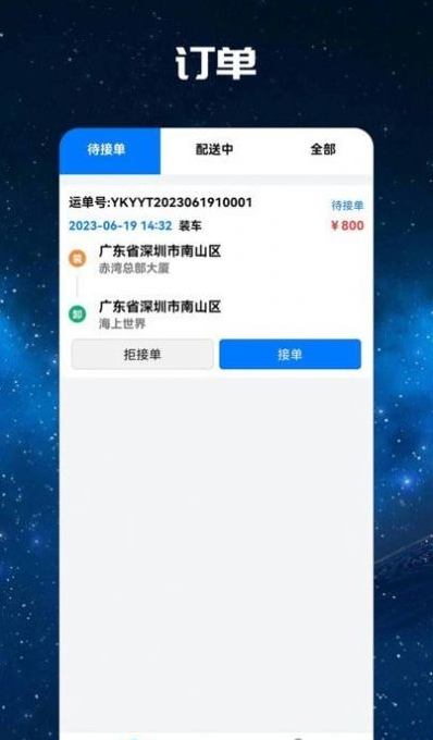 可以查收下达的物流订单,并作受理和拒绝。
