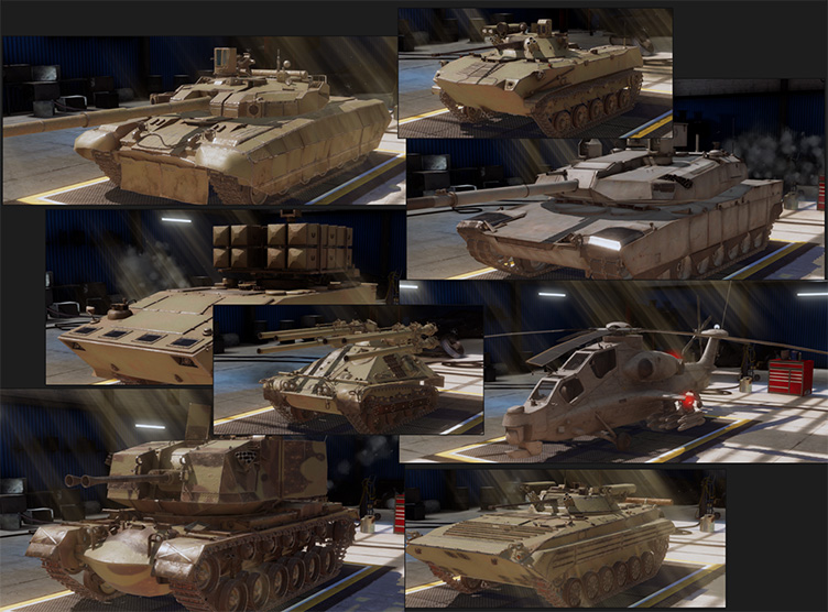 游戏内置了超过60种独一无二的坦克和飞机供你驾驭。从二战时期的经典谢尔曼、T-34、虎式坦克,到冷战时代的现代化主战坦克;从螺旋桨战斗机到喷气式战机——每一款载具都经过精心还原,拥有独特的外观和性能参数。