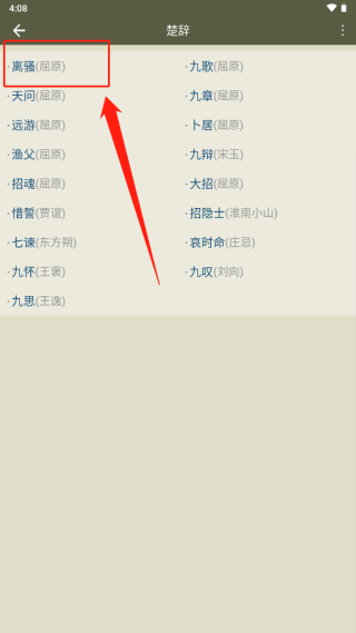 1、找到需要查看的相应诗文,以《离骚》这篇诗文为例进行操作。