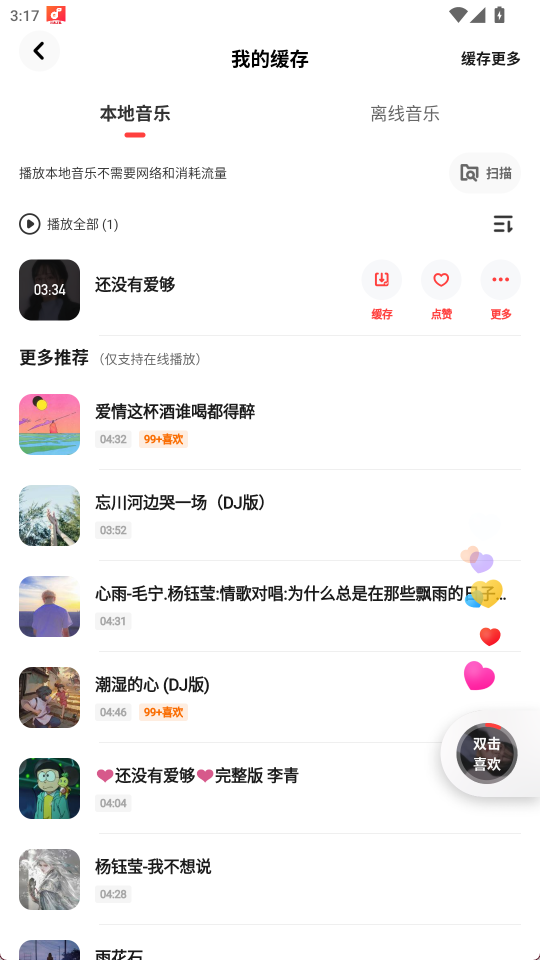 1、点击歌曲进行播放,可以点击缓存下载到本地