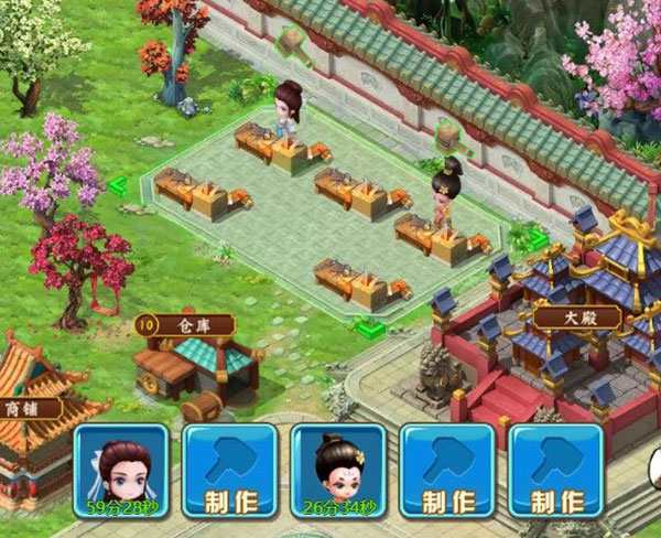 4、游戏初期开放两个打造台,可安排两名弟子前往打造,当门派到达5级,8级,11级既可开启更多的打造台,安排更多的弟子去打造。