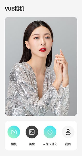 1、打开闪闪相机应用,软件下方依次分布着美颜相机、照片美化、人像卡通化功能,还有当前相机版本信息。