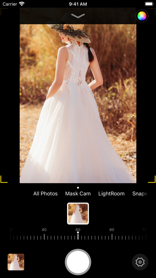 2、点击预览图手动对焦,预览图两指缩放变焦,自动裁剪将以遮罩图比例裁剪照片;