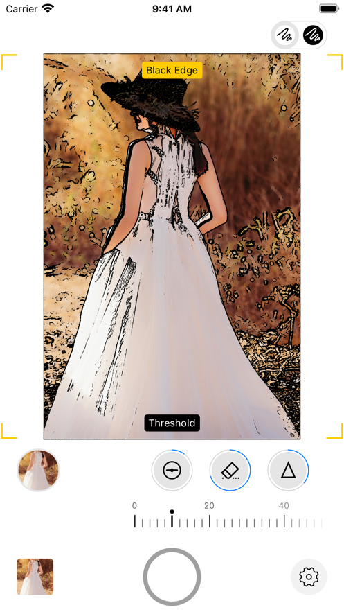 2、打开相机,选择一张您喜欢的照片,照片将变成线条图(遮罩图)显示在相机预览图上方;