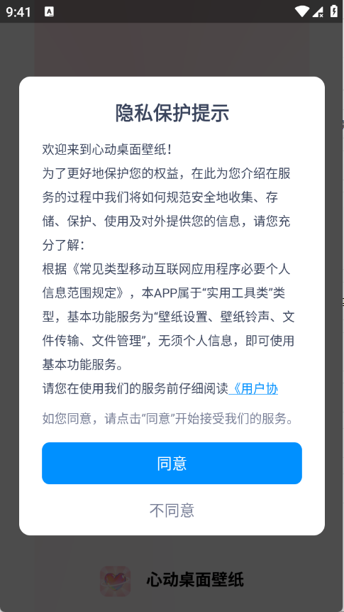 1、在本站下载心动桌面壁纸app,点击同意相关协议完成安装。