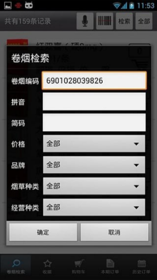 2、进入软件界面后,找到左侧的卷烟订货功能,输入香烟相关编码,即可查找心仪香烟。