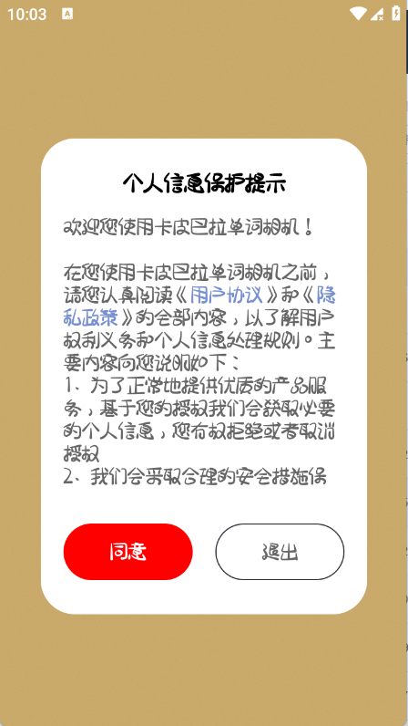 1、用户在地理教师下载网下载卡皮巴拉单词相机app,安装完成后打开,点击同意相关政策与协议。