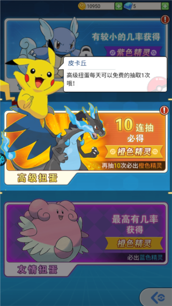 3、还有扭蛋机功能,玩家可以通过抽奖获得橙色精灵;
