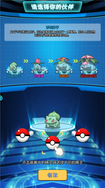 1、下载安装并进入游戏,玩家首次可以选择一个精灵球,选择属于你的小伙伴;