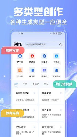 3、 多场景模板适配:内置针对不同用途的写作框架,如短视频脚本、直播话术、教学设计等,贴合实际需求。