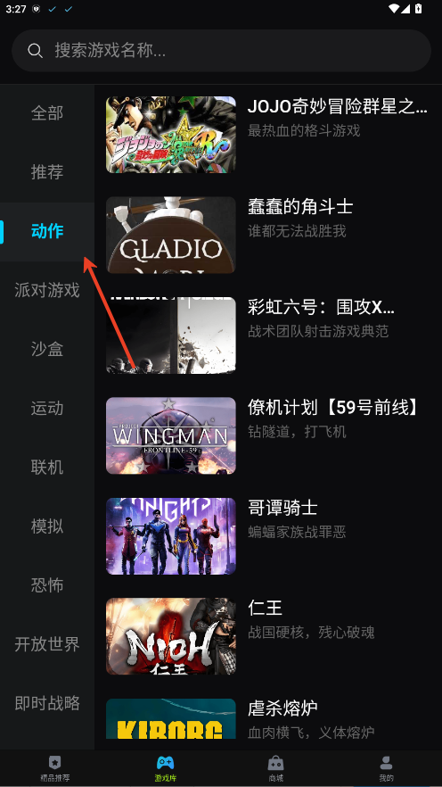 3、借助侧边栏的分类筛选功能,可轻松定位自己喜爱的游戏类型。