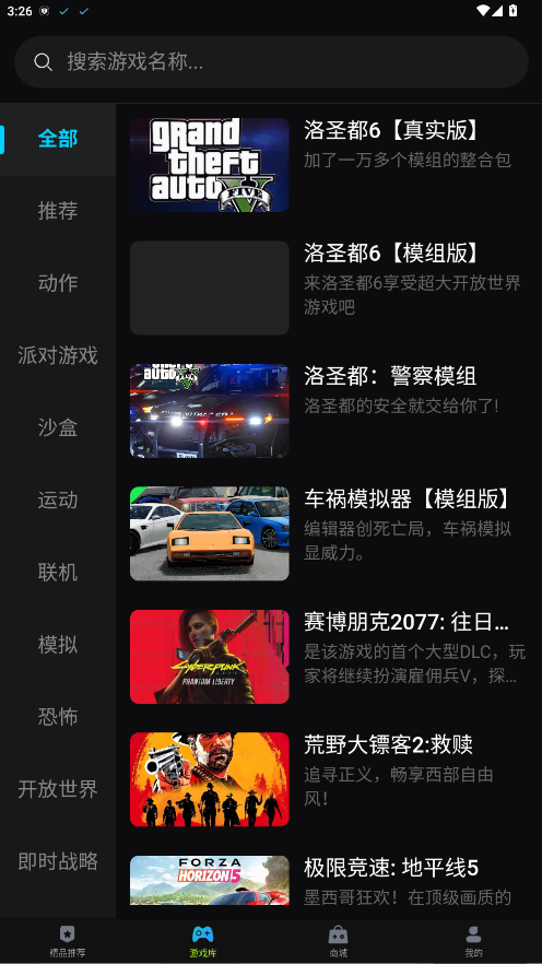 2、点击游戏库功能按钮,就能浏览完整的游戏分类目录,查找便捷。