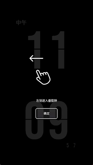 2、 手势快捷操作:左滑启动番茄钟,右滑开启正计时,上滑进入设置,操作无需学习即可掌握。