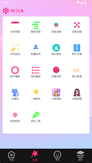 1、首页提供了丰富的图片编辑、拼图功能