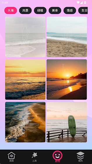 3、素材界面提供多种分类的背景素材