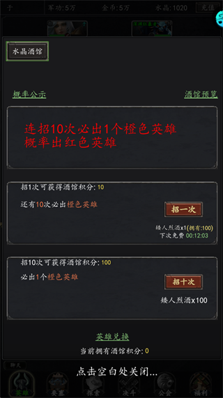 用福利领取的矮人烈酒进行十连抽,必出橙色英雄,快速组建高战力核心阵容。