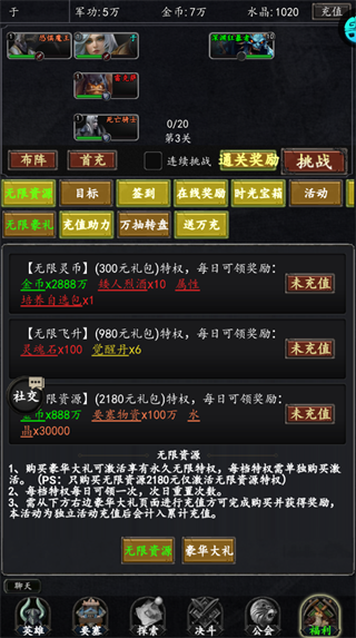 利用0.05折福利购买无限资源等特权,每日领取海量资源,加速英雄培养与战力爆发式增长。
