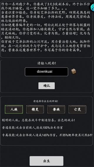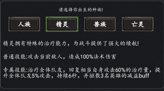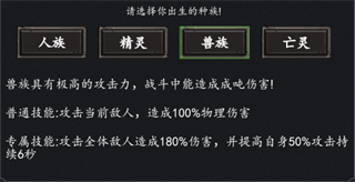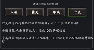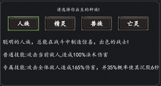 游戏提供四大种族开局选择人族,利用其专属技能攻击全体敌人造成165%伤害,为前期推关和战力成长打好基础。