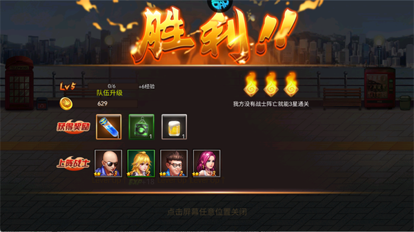 主线第一关,送伙伴;主线第十关,送装备;主线第五十关,送皮肤。通关奖励一路送,从新手村送到决战城。通关福利:主线通关免费领取可靠伙伴和大量升级物品。关是闯的,伙伴是送的。