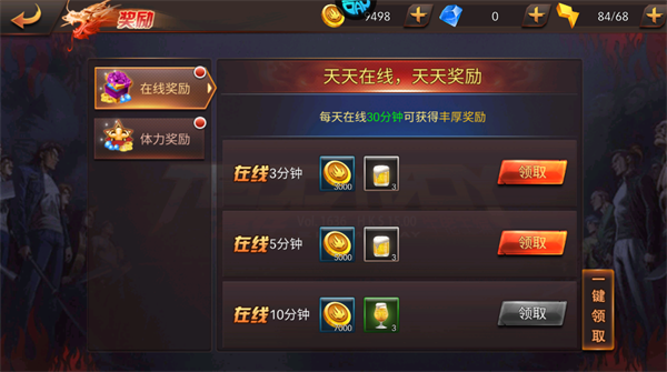 每日挂够在线时长,领取金币和体力啤酒,为角色养成和副本推进提供基础资源。