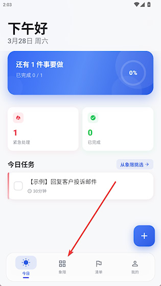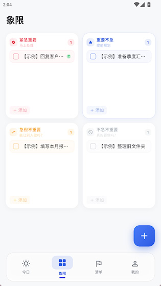 2、可以看到各个象限内的事务,点击+添加新任务
