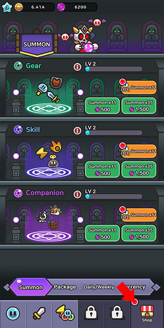 3、装备可以点击右下角进入商店界面,第一个池子就是装备池,第二个则是技能池,第三个为宠物池,大家根据需要抽取即可