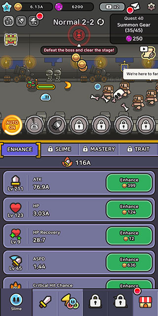 玩家将扮演一只不起眼的史莱姆,在冒险途中不断击败敌人,赚取金钱。用积攒下来的财富升级装备、提升各项属性,让这只弱小的小家伙一步步成长为令人刮目相看的强者。