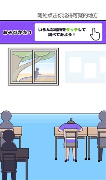 打开窗户前,点击桌子上的紫衣男生。