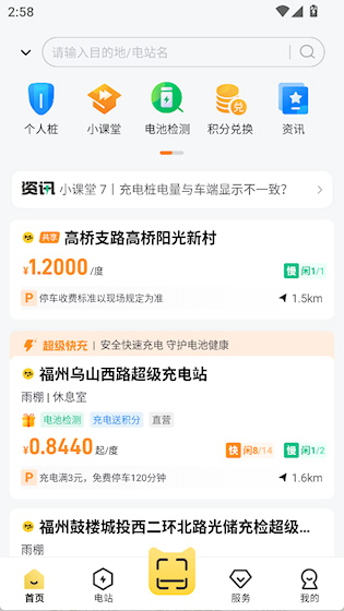 1、在首页可以看到附近电站的价格、距离等信息