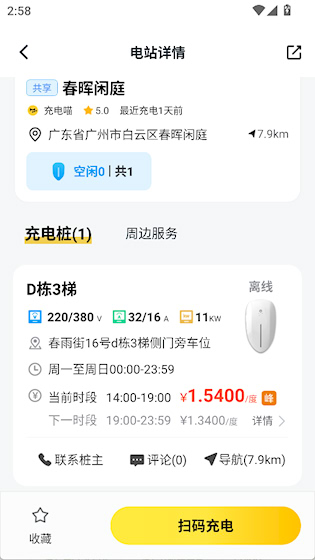 2、点击一个电站查看详情,一键扫码充电