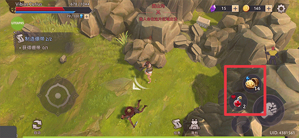 5、当血量,体力不足时,你可以使用血瓶恢复血量,吃食物可以恢复体力