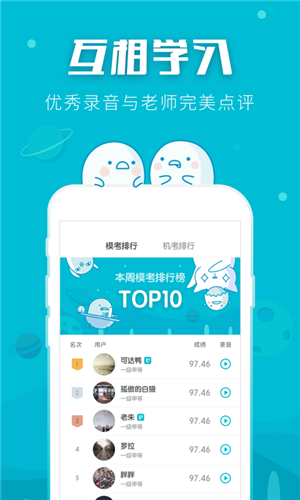 统计出普通话发音分数,在所有用户中进行排行。从而知道你的普通话发音水平在全国的排名。