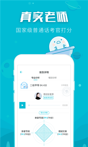软件!依据“普通话水平测试规范”,测试普通话发音,普通话口语的等级水平,从而更好地