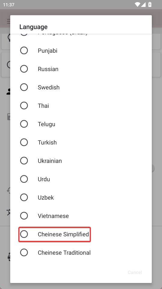 4、在最下方找到Chinese Simplified