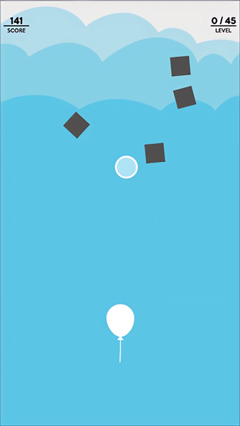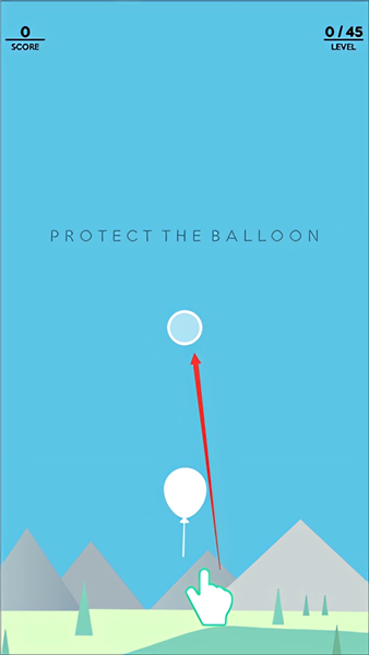 3、我们长按屏幕,控制气球向着小圆圈移动。
