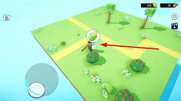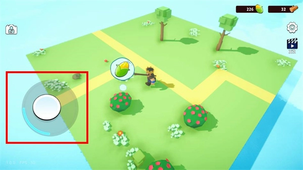 1、通过左侧虚拟摇杆操控角色在浮岛上移动,探索岛屿区域。