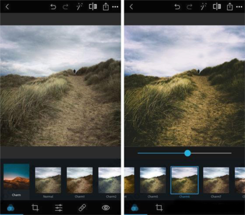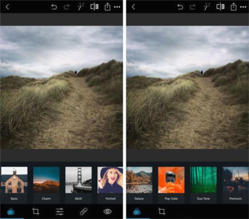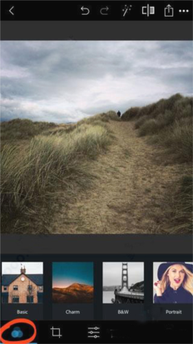 1、滤镜在Photoshop Express应用程序中称为“外观”。要访问过滤器,请点按屏幕左下角的查看图标(三个重叠的圆圈)。